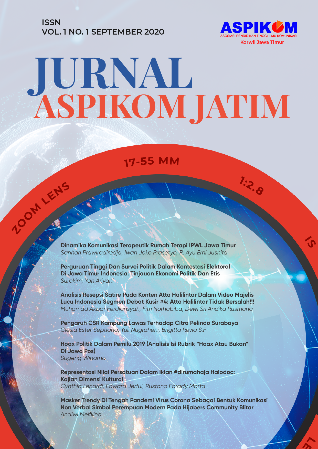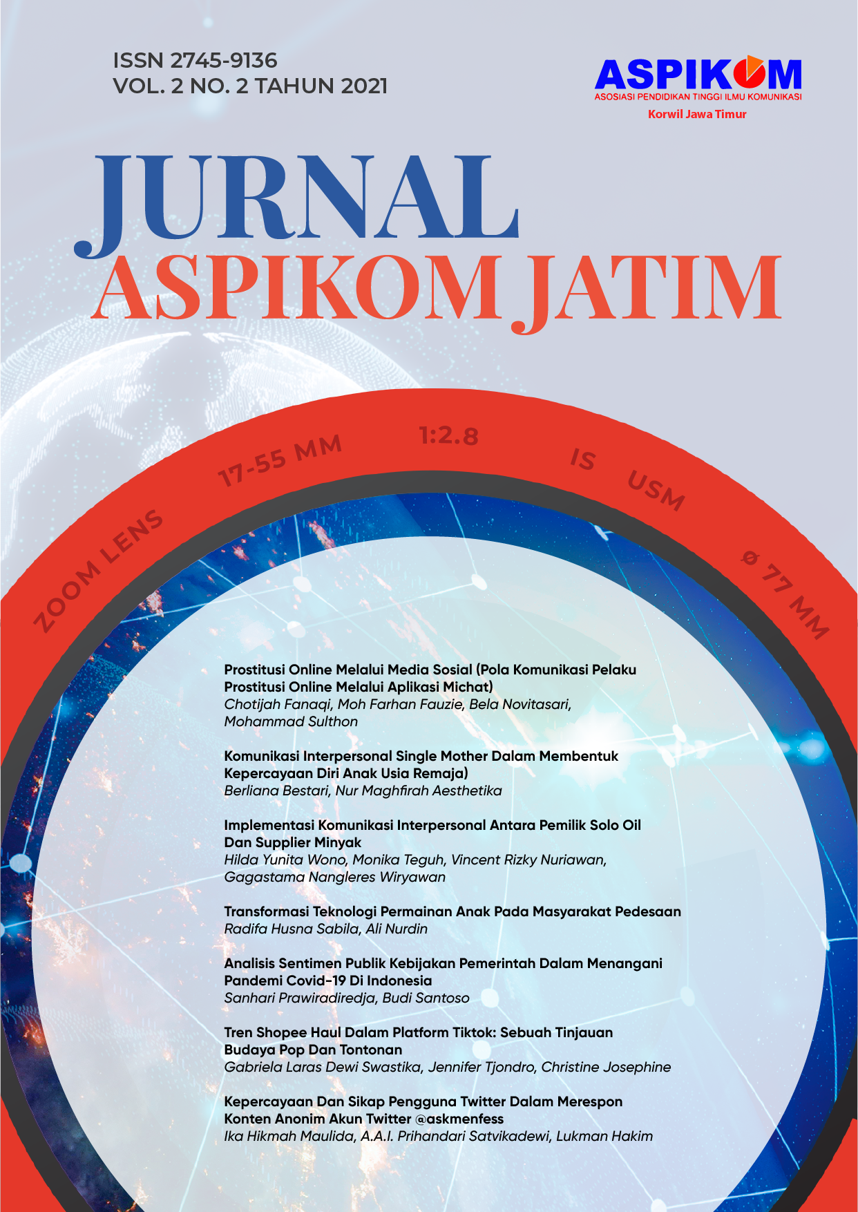 Jurnal Aspikom Jawa Timur dipublikasikan oleh Asosiasi Pendidikan Tinggi Ilmu Komunikasi (ASPIKOM) Koordinator Wilayah Jawa Timur